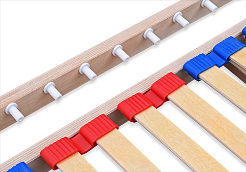 De werkelijke lattengrootte is ca. 1 cm smaller en ca. 2 cm korter dan de afmetingen van het bed, zodat het rooster gemakkelijker in bed kan worden aangebracht.