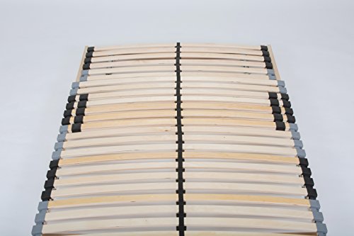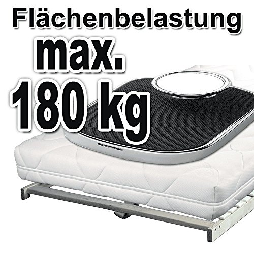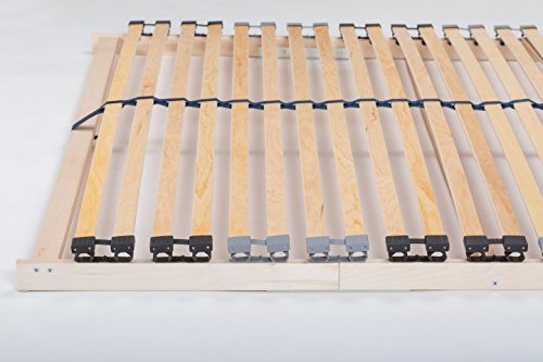 Made in Germany – De bedbodem is gemaakt van meervoudig verlijmd multiplex en is belastbaar tot 180 kg. Het hout is bijzonder robuust en overtuigt door zijn stabiliteit. Hoge kwaliteit – Door het verstelbare hoofdeinde en de stabiliserende verstelbare middenriem zorgt de lattenbodem altijd voor een balancerende schouder- en bekkencomfortzone.