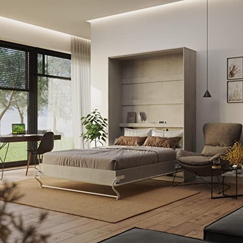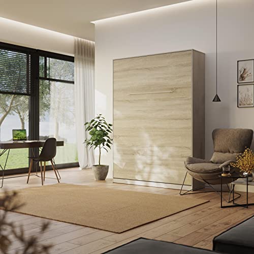 Specificaties: SMARTBett Kastbed standaard met gasveren, 140 x 200 cm, verticaal beton/eiken sonoma, wandbed, opklapbed voor logeerkamer, kantoor, woonkamer, slaapkamer