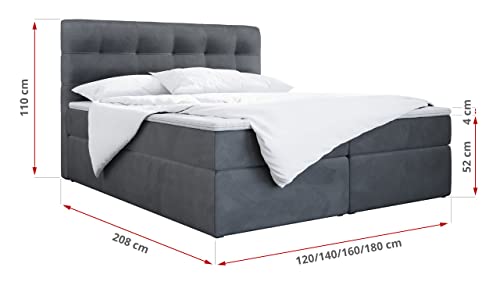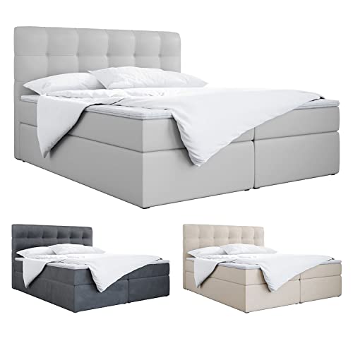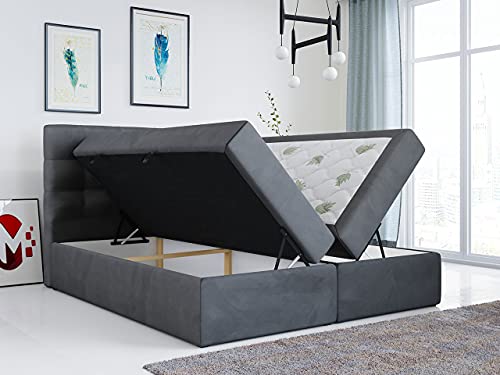 MKS MEBLE Box spring bed – Double bed – Upholstered bed with multicocket mattress H3 and topper – Artificial leather bed with storage box – Storage bed – 180 x 200 cm – Top 1 Gray Monolith
