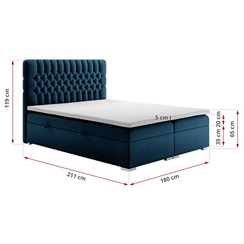 Specificaties: MKS MEBLE Boxspring bed – Tweepersoonsbed – Gestoffeerd bed met multicocket matras H3 en topper – Kunstleder bed met opbergbox – Opbergbed – 180 x 200 cm – Dalia Marine Monolith