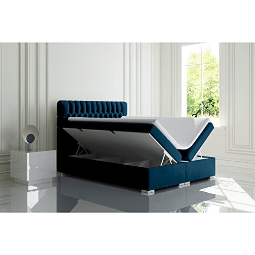 MKS MEBLE Boxspring bed – Tweepersoonsbed – Gestoffeerd bed met multicocket matras H3 en topper – Kunstleder bed met opbergbox – Opbergbed – 180 x 200 cm – Dalia Marine Monolith