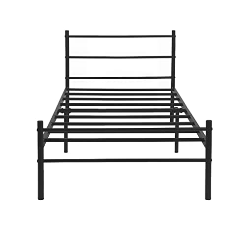 Specificaties: FetiNes Eenpersoonsbed, logeerbed, metalen bed, modern tienerbed, bedframe, bedframe met lattenbodem voor slaapkamer, logeerkamer, bed, zwart, 90 x 190 cm