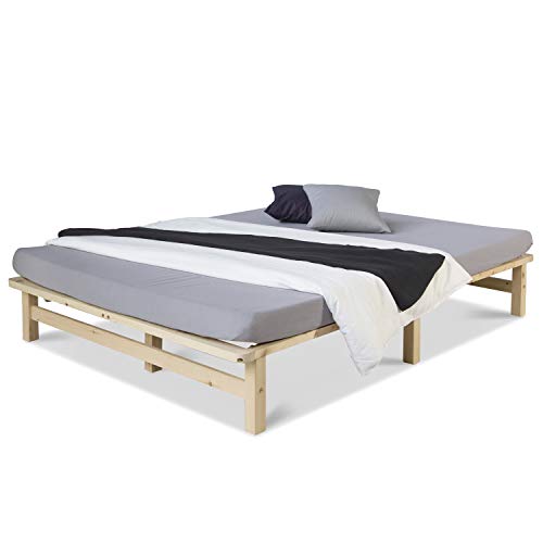Specificaties: HOMESTYLE4U 1909 Houten bed palletbed, 140 x 200 cm; bedframe met lattenbodem, naturel, massief grenen