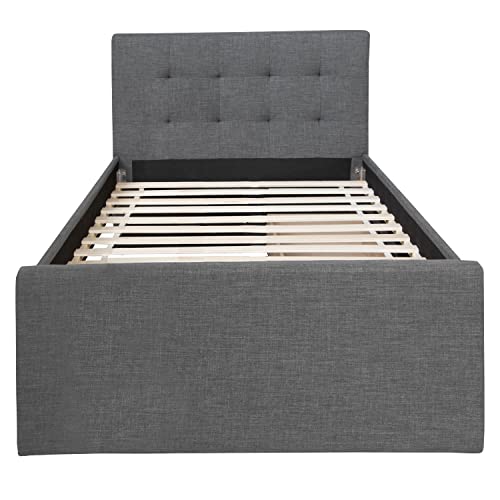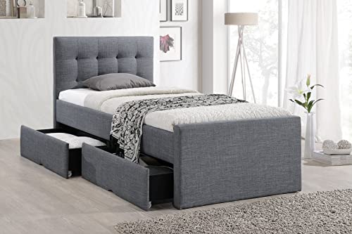 Homestyle4u 1980, gestoffeerd bed 90×200 cm, bedframe met lattenbodem rugleuning 2 laden, antraciet