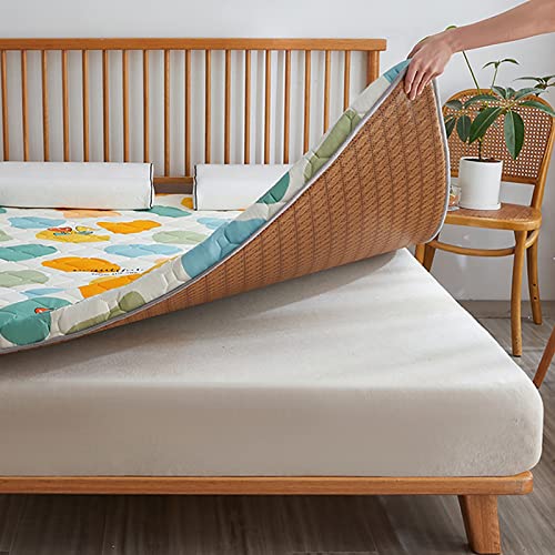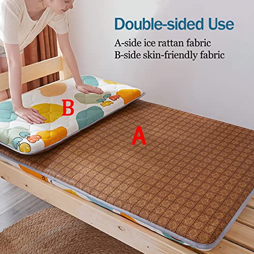 Hoogwaardig materiaal: de voorkant van de matras is van katoenen bedrukte stof, de achterkant is van ijsrotan, de binnenvulling is van hard katoen. Dubbelzijdig gebruik, de vloermatras kan u in alle seizoenen een comfortabele slaapomgeving bieden.