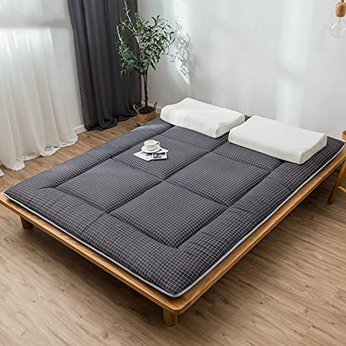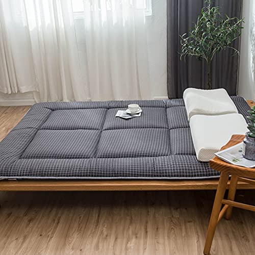 Draagbare Japanse tatami vloermat, futon matras ademende katoenen slaapkussen opvouwbare rollebodem lounger bank bed for jongens meisje slaapzaal matras-D-150x200cm (59x79inch), Quinch-3006
