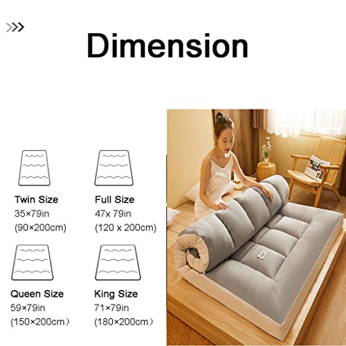 Specificaties: Japanse Futon – Opvouwbare Futon, Japanse Vloermatras tatami vloer matras slaapzaal slaapkussen, voor een dubbele volle koningin king size bed, grijs, twin